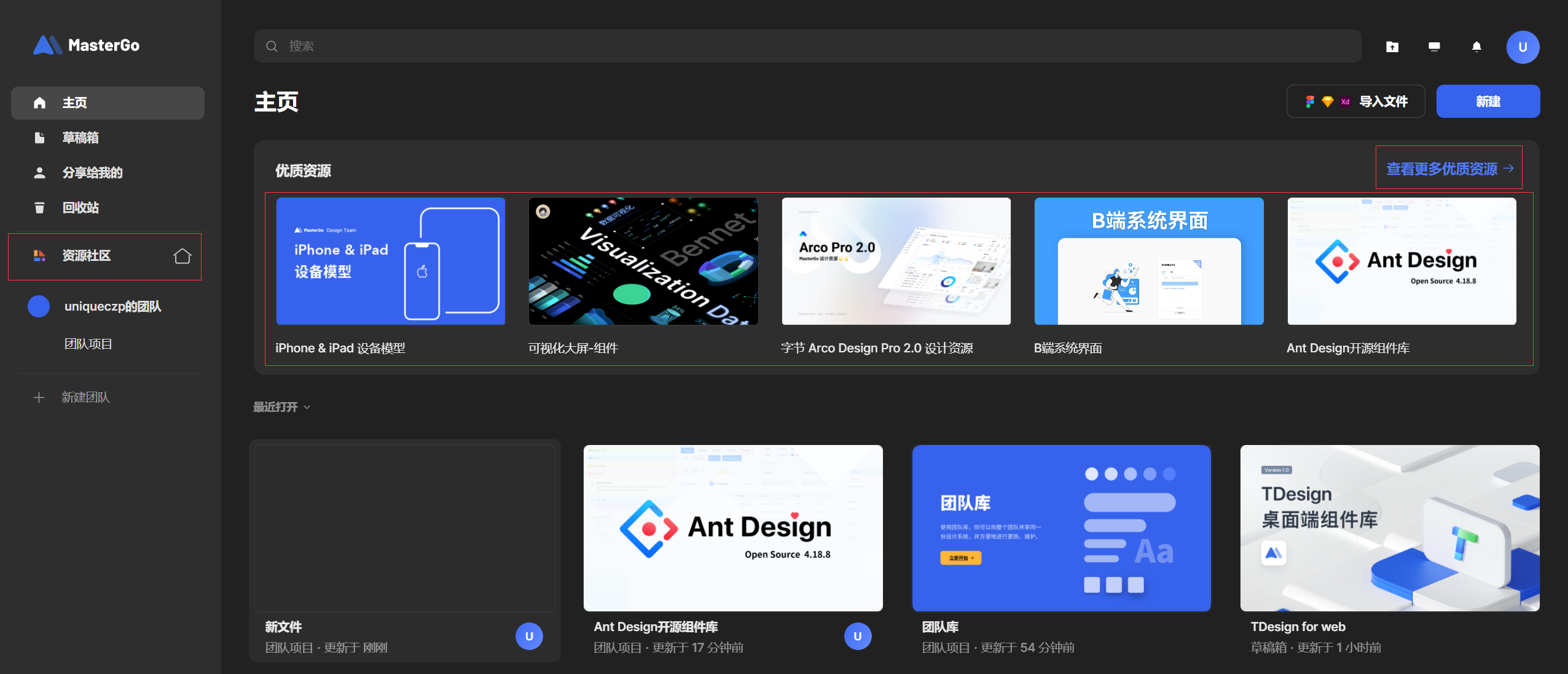 3.这时会默认放入草稿箱,通过拖拽将资源放入团队项目
