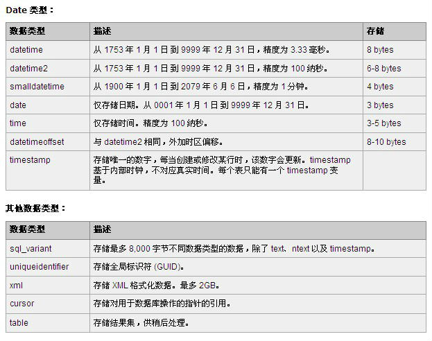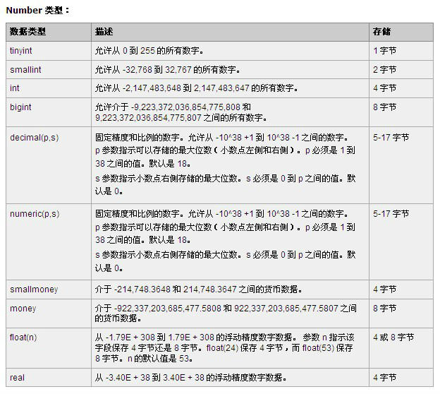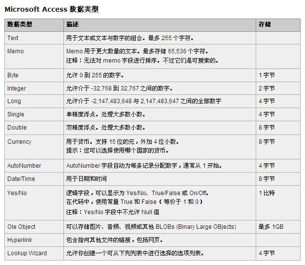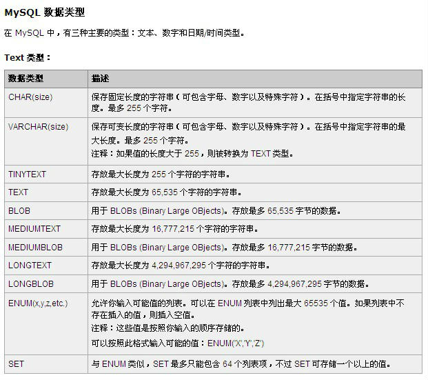 Oracle/MSSQL/Mysql 常用数据库的字段类型及大小