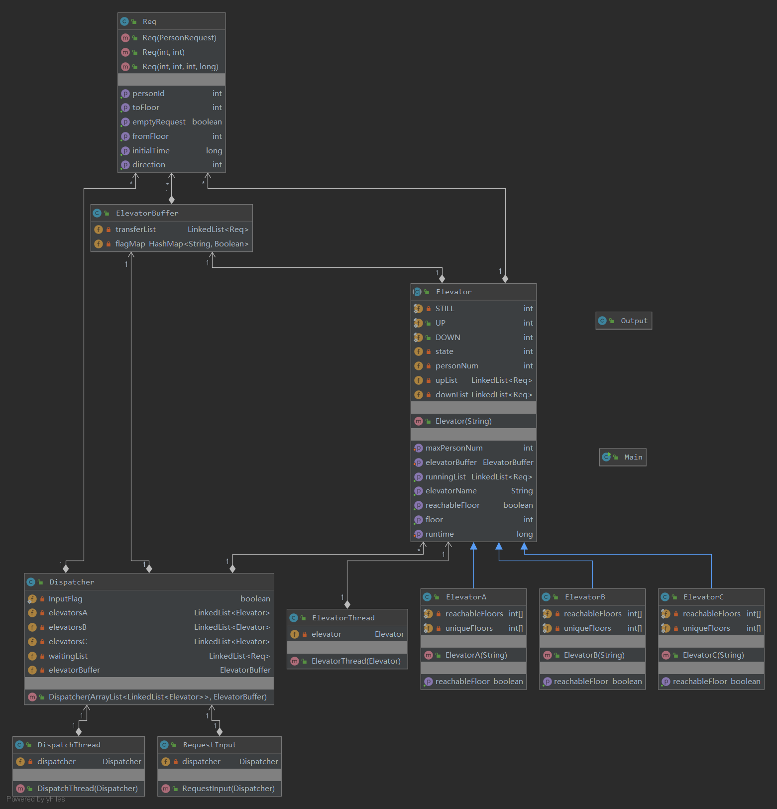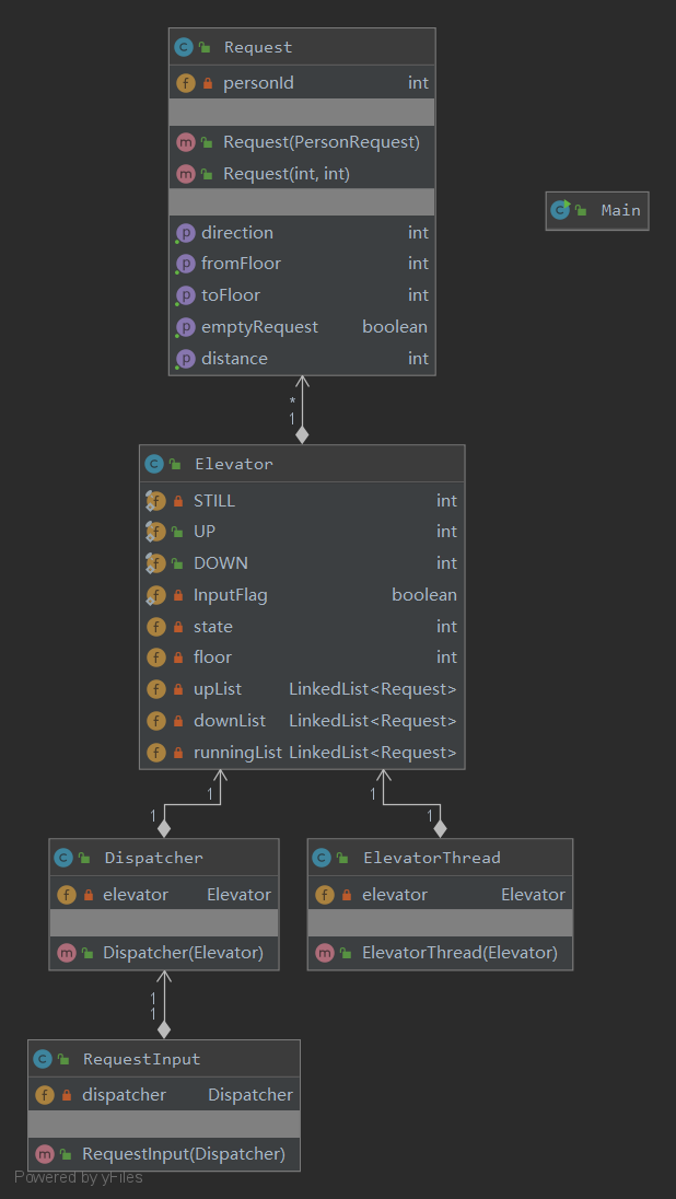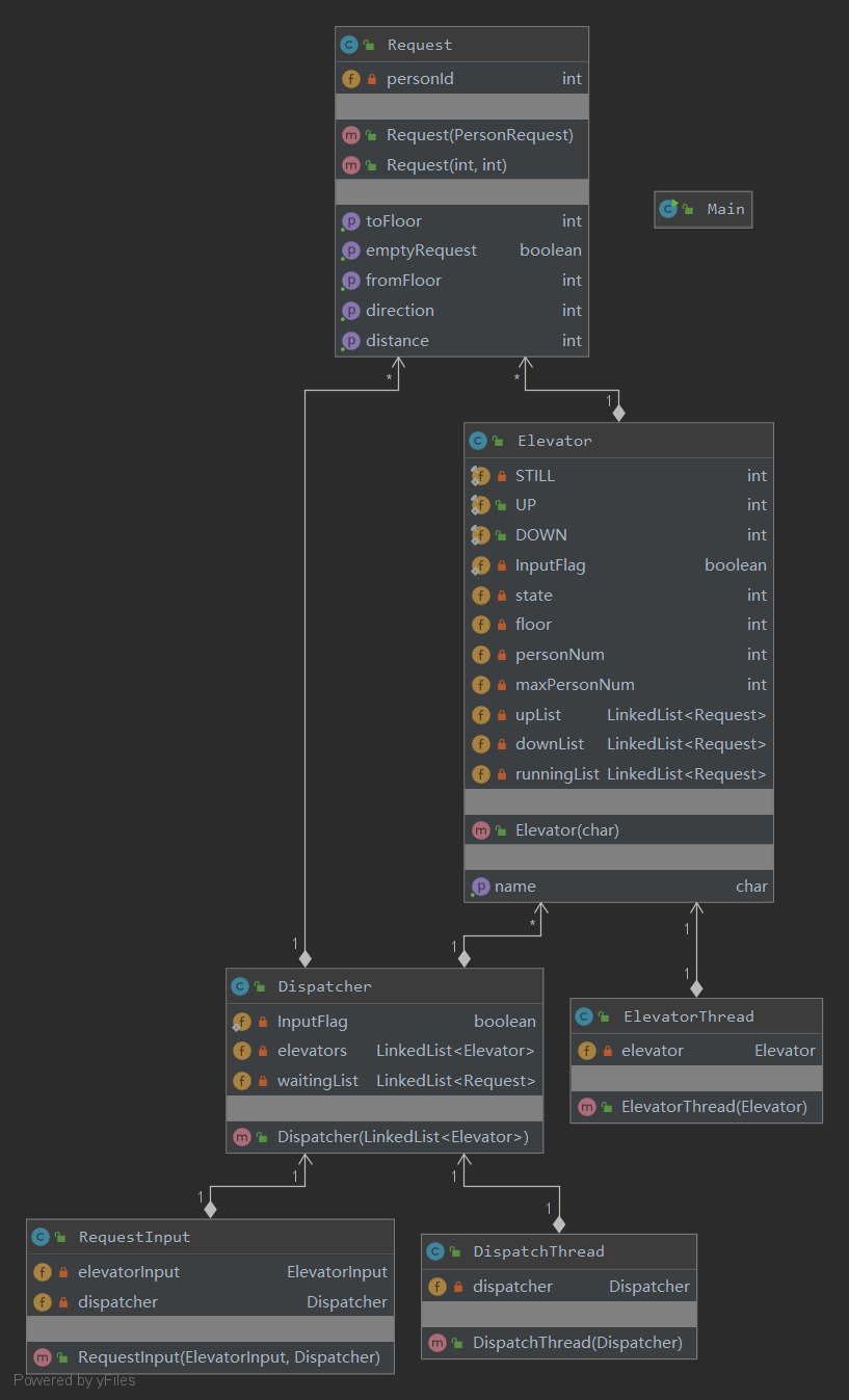 在第一次作业基础上,新增DispatchThread线程,负责将请求分配到各电梯中