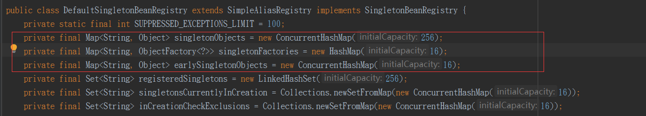 图中的singletonObjects就是一级缓存,一个初始化大小为256的ConcurrentHashMap,也是我们每次常说的spring容器(IOC容器,也叫单例池),里面存放的是经过完整bean生命周期的对象(也有可能是代理对象)。