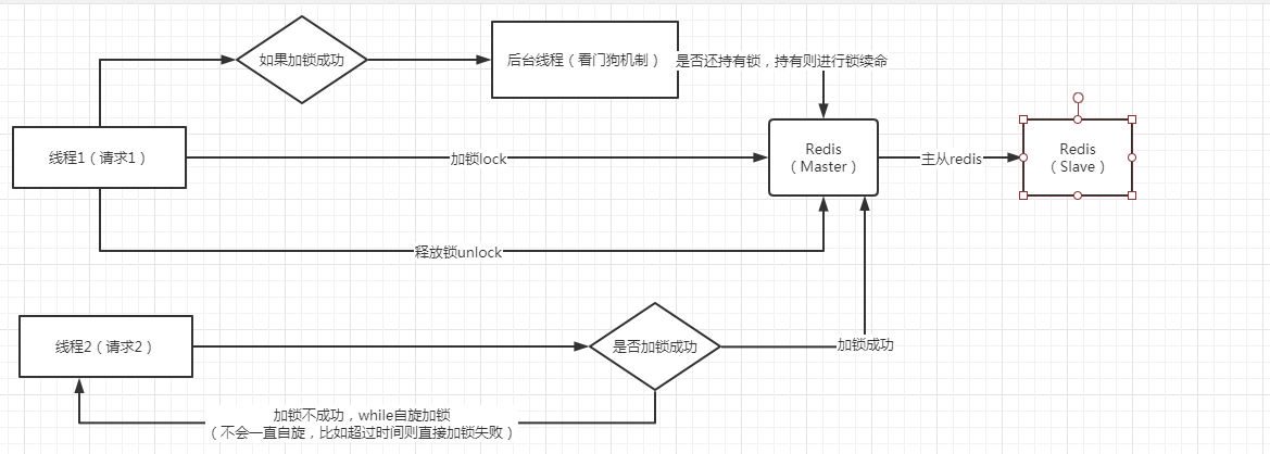 以上实现分布式锁其实依旧有问题,就是比如上面线程1加锁成功,redis里面的Master节点已经把key设置进去了,但在进行相关信息同步到Slave(主从复制)的过程中,Master节点挂了,key还没有同步过去,