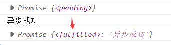 let p=new Promise((resolve,reject)=>{ setTimeout(()=>{ resolve("异步成功"); },3500); }); console.log(p); //Promise {<pending>} p.then(val=>{ console.log(val); console.log(p); //Promise {<fulfilled>: '异步成功'} })
