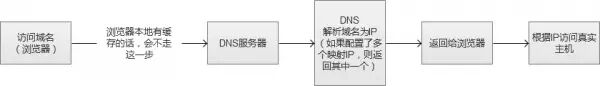DNS(Domain Name System)负责域名解析的服务,域名url实际上是服务器的别名,实际映射是一个IP地址,解析过程,就是DNS完成域名到IP的映射。而一个域名是可以配置成对应多个IP的。因此,DNS也就可以作为负载均衡服务。