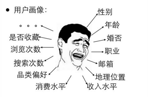 有大量的数据,那我们从这些数据里面就给用户画像,我们会去判断用户的各种属性,这些属性有一些是,可能用户在注册的时候就会告诉我们了,比如说性别,年龄,包括邮箱,这些可能本身他注册的时候就会告诉我们,还有一些是需要我们去分析,比如说这个是否结婚了,他的职业是什么,然后包括他的地理位置。
