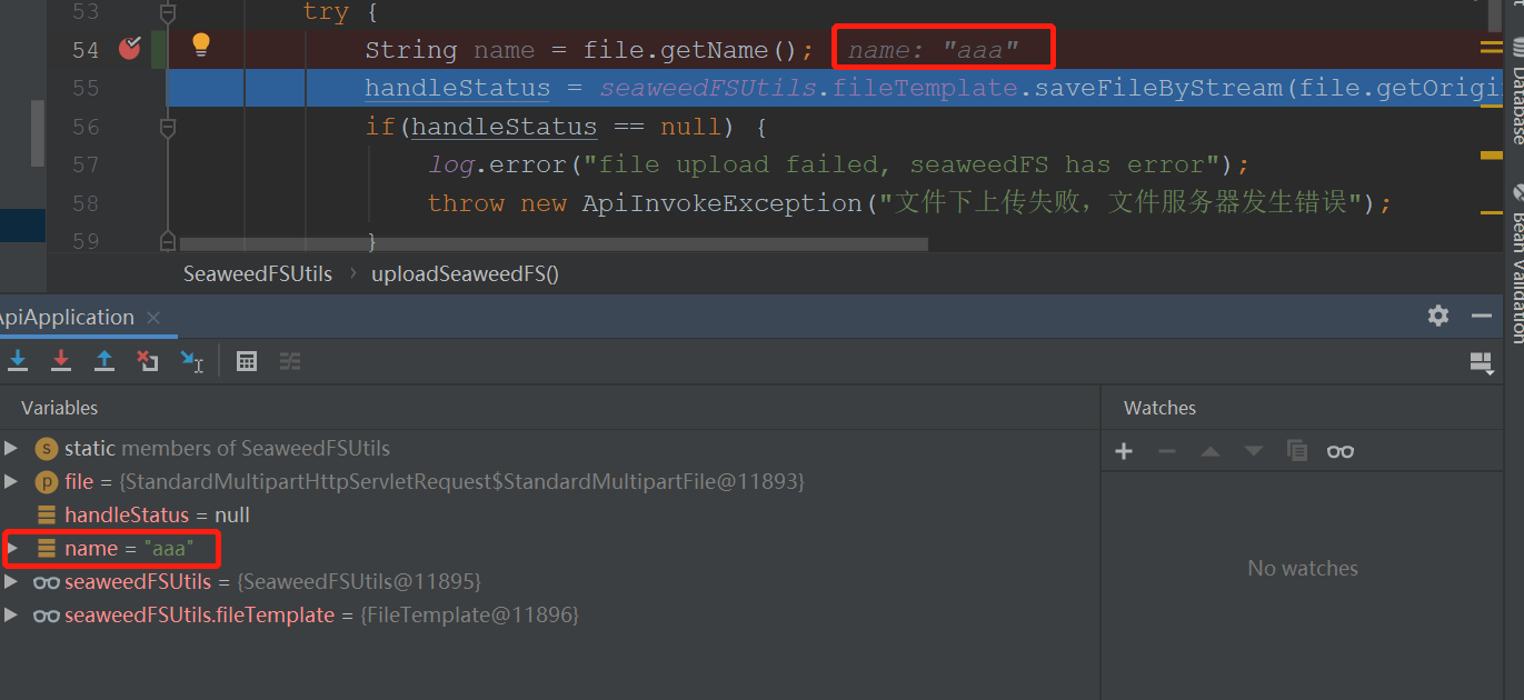 我上传文件,后台debug,getName()得到的竟然是 "aaa",如下