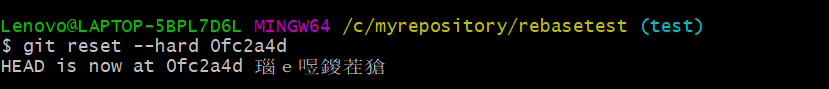 4、执行完上面的命令之后,会切换到0fc2a4d那个版本,后面的乱码是“解决冲突”四个字的乱码