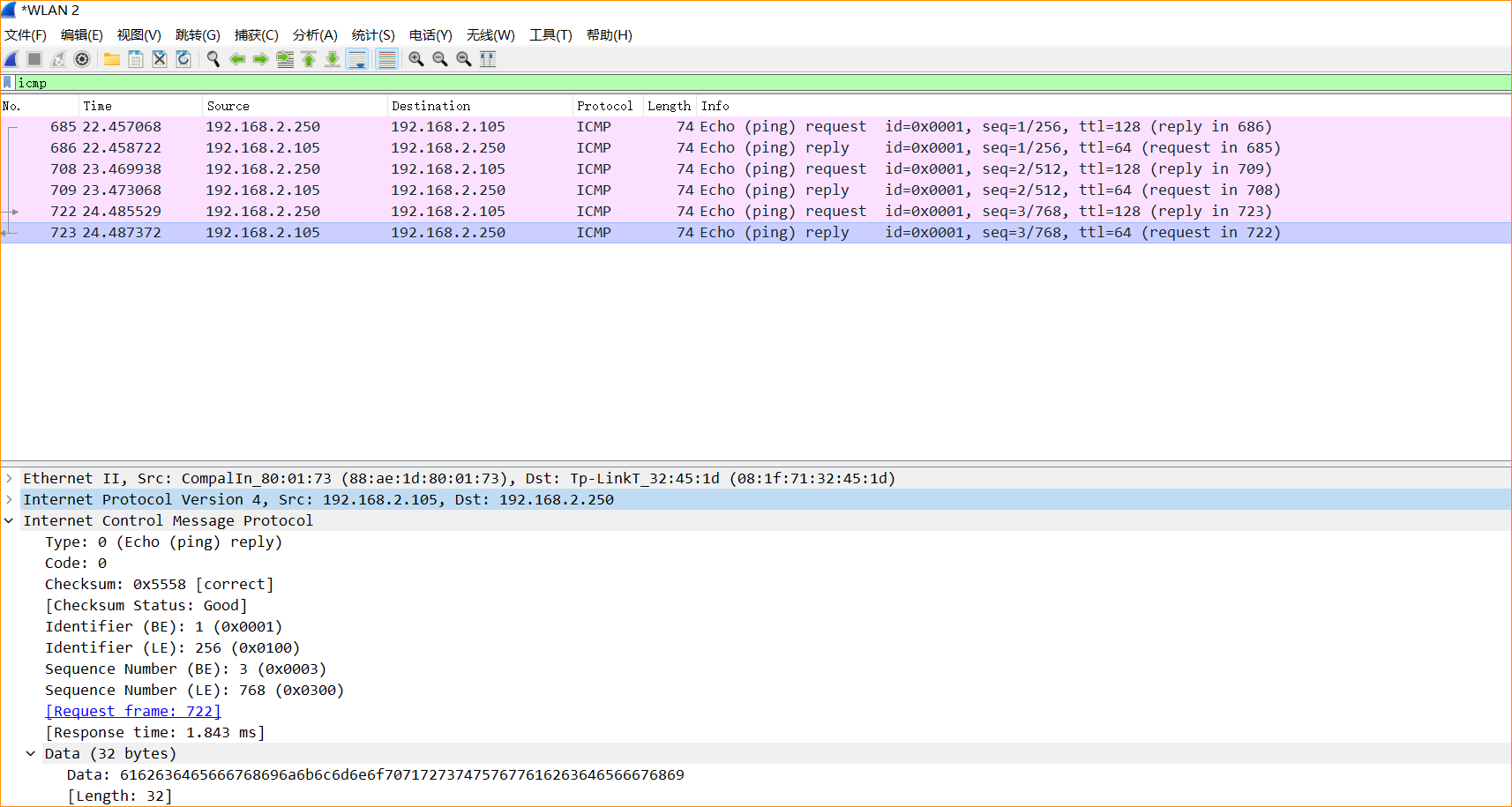 Kali linux上wireshark这个值似乎算错了。怎么算都对不上。windows的wireshark是对的。坑爹啊。