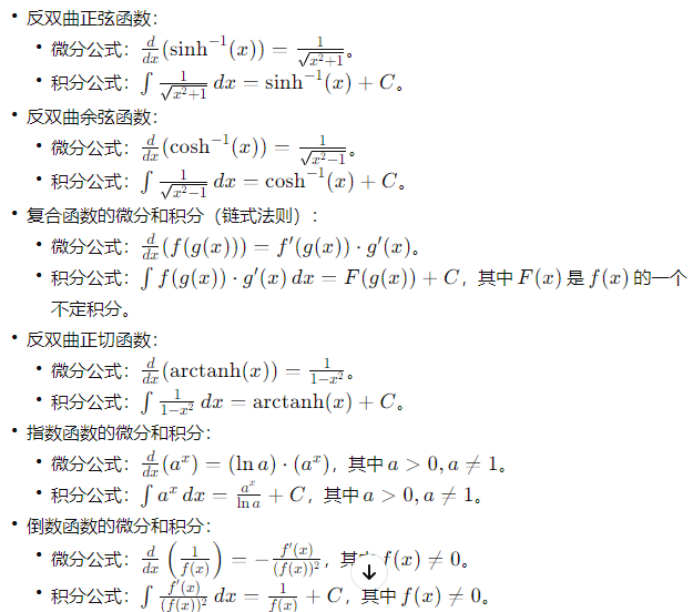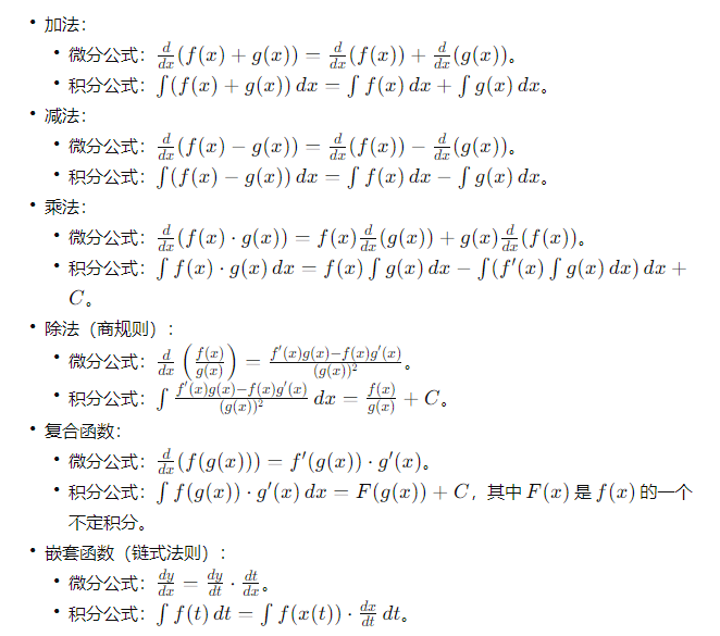 微分积分及其运算法则成对列举