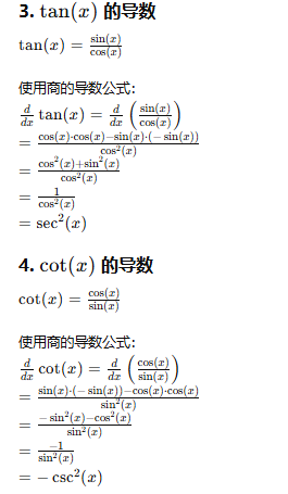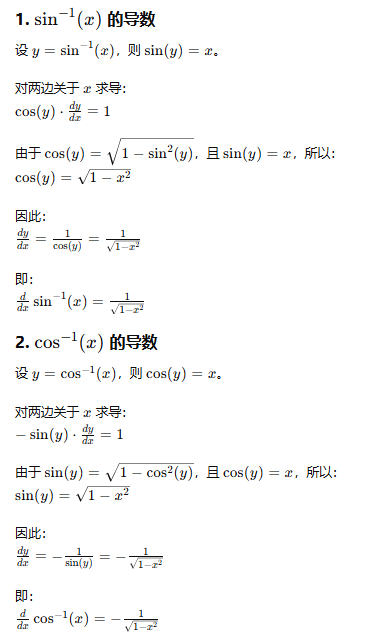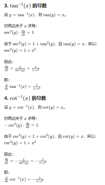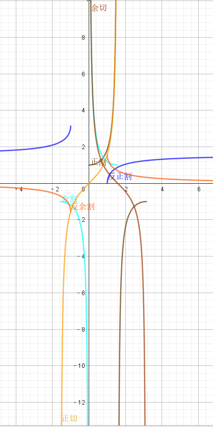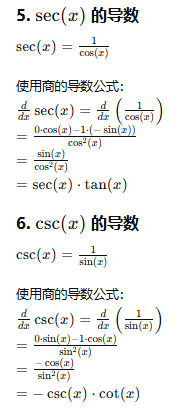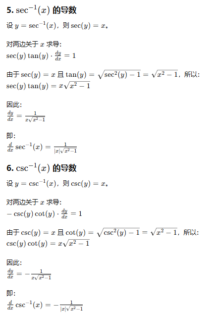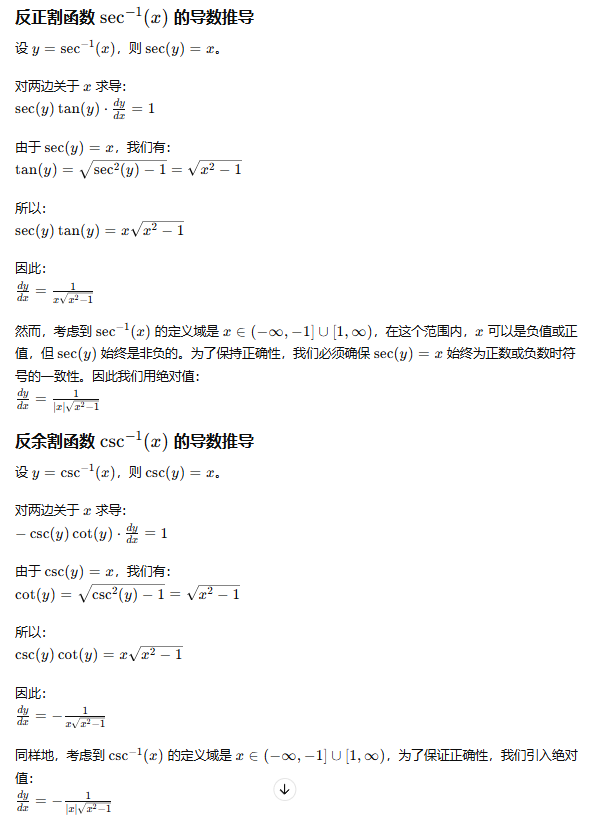 反正割在其两段定义域内均为增函数,导数为正。反余割在其两段定义域内均为减函数,导数为负。