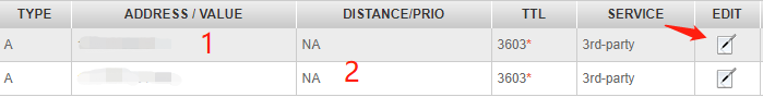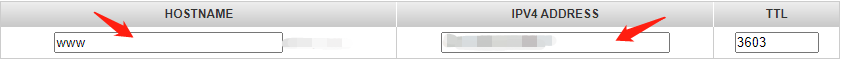 2. 点击 序号2 右边编辑按钮,在HOSTNAME填上 www ,在IPV4的位置填上服务器的公共IP地址。