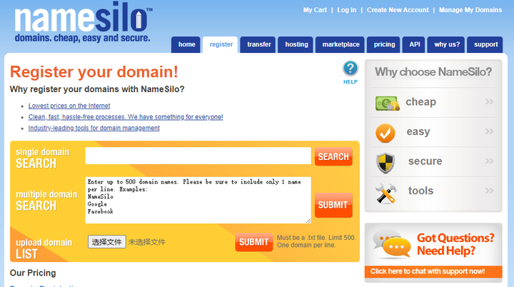 首先:我们进入Namesilo网站(可能会有点慢,毕竟是外网)