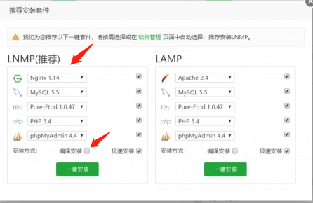 进入面板会涉及到安装套件。以下供参考
