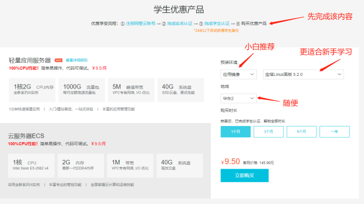 面向学生:推荐阿里云和腾讯云学生服务器--学生机。好处:价格实惠!价格实惠!价格实惠!9元一个月,难道你不心动?作为入门新生,先买来了解是很足够啦。