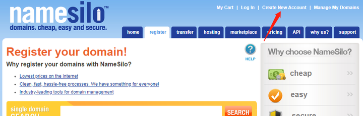 考虑范围当然是非常多的,不过,作为新手,先了解大概一点作为入门应该还是可以的。那么我本人呢,选择的是在Namesilo购买域名(支持支付宝付款)。