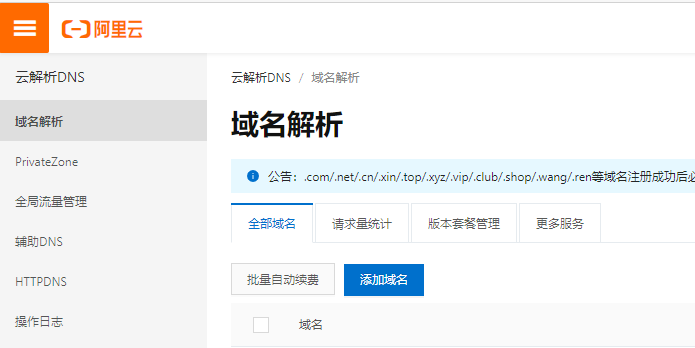 有免费的解析,也有需要花钱的。花钱的,自然好处更多。老规矩,作为穷鬼的我,当然选择免费的啦。我选择的是在阿里云上面解析。