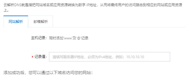 当你购买好域名之后,呈现形式为 example.com的形式,还没有添加www。要让你的域名公开到网络上面去,需要将其解析,即可获得www.example.com的形式。