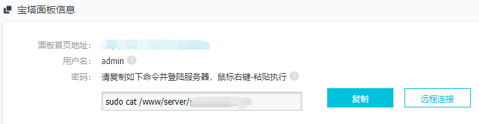 用户名为你登录面板的默认用户名。获取密码的时候,记得先进入root权限。会有提醒!