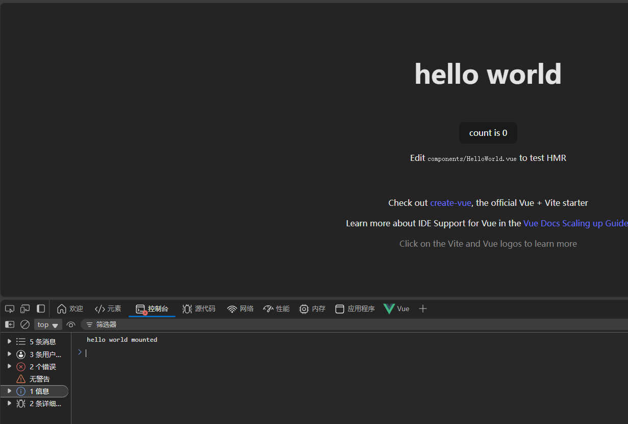 <script setup lang="ts"> import HelloWorld from "./components/HelloWorld.vue"; const onHelloMounted = () => { console.log("hello world mounted"); }; </script> <template> <div> <HelloWorld msg="hello world" @vue:mounted="onHelloMounted" /> </div> </template> <style scoped></style>
