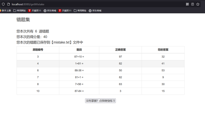 (1)启动项目后,访问http://localhost:8080/getCalculation,为展示方便,以生成10道计算题为例展示,主页如下: