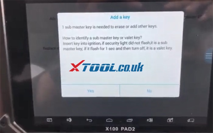 Then insert a programmed sub master key and switch the ignition to “On” position