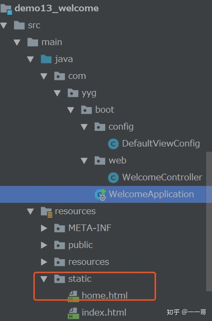 从源码中我们可以看到,欢迎页的静态资源文件默认就是index.html页面,并且只要该页面存放在resources目录下的默认路径中,就会被"/**"映射。