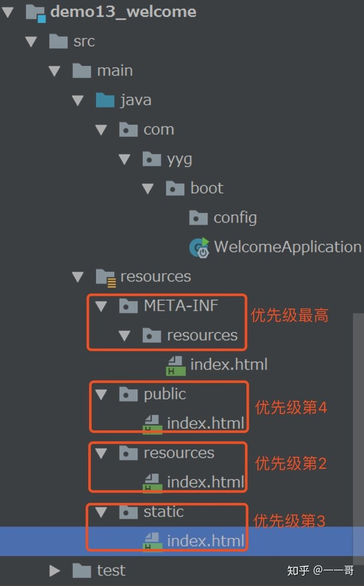 也就是只要index.html页面在以上几个目录内,就会自动被Spring Boot探测到。