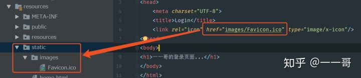 <!DOCTYPE html> <html lang="en"> <head> <meta charset="UTF-8"> <title>Login</title> <link rel="icon" href="images/Favicon.ico" type="image/x-icon"/> </head> <body> <h1>一一哥的登录页面...</h1> </body> </html>