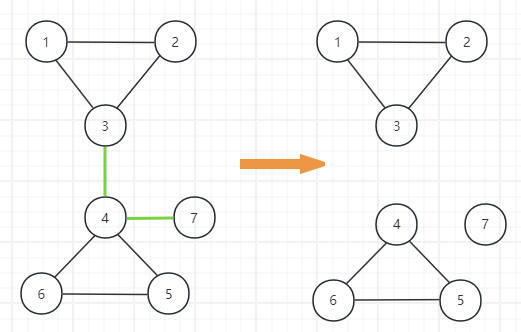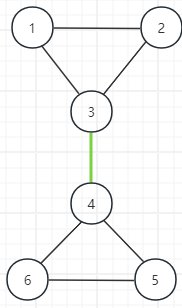 如图节点3和4之间的边是割边,删除后原图会变成1-2-3和4-5-6两个连通分量。
