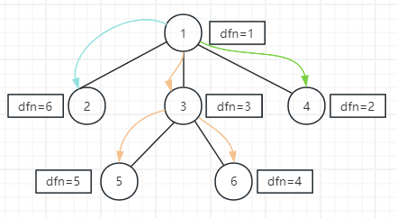 本例下最终的\(dfn=[1,6,3,2,5,4]\)