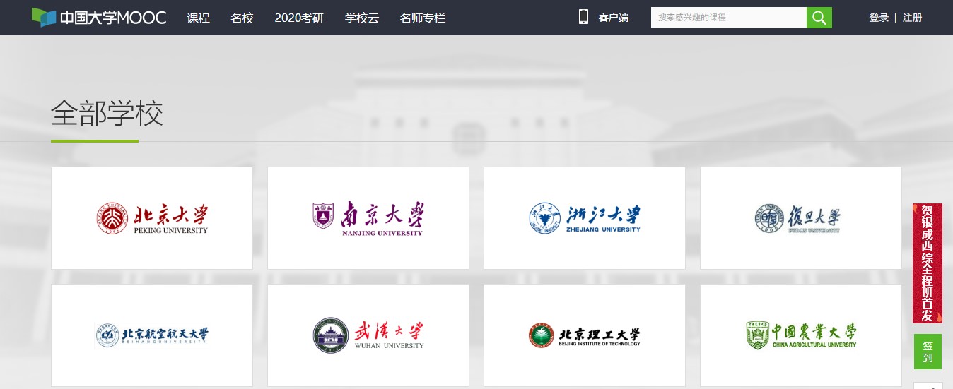 中国大学慕课http://www.icourse163.org