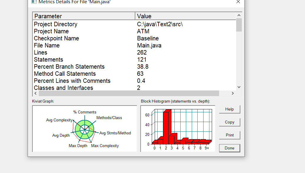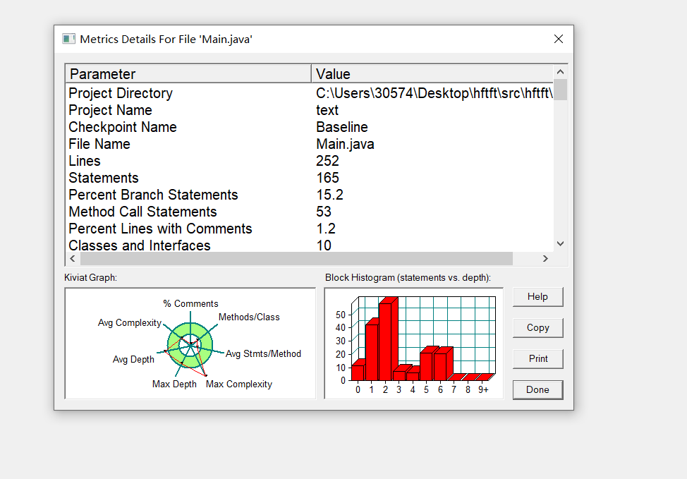 该类中最复杂函数的复杂度Max Complexity较高,在绿色范围(所推荐的java良好代码,如平均复杂度在2.0-4.0之间)表示良好