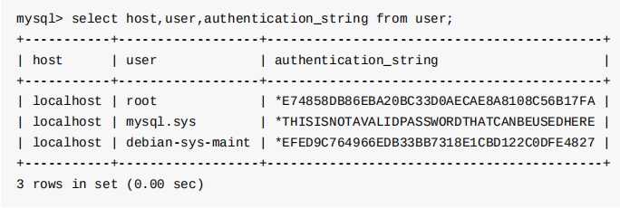 select host,user,authentication_string from user;