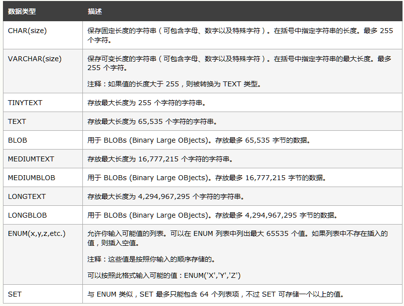 在 MySQL 中,有三种主要的类型:文本、数字和日期/时间类型。