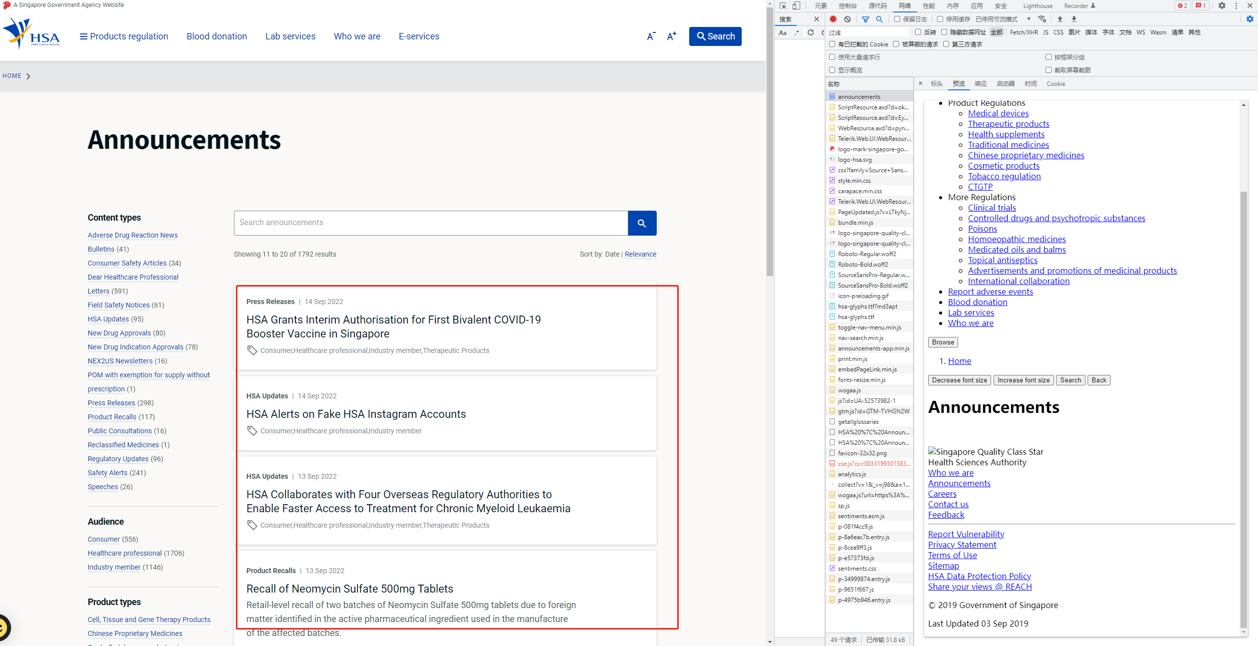 示例网站:如下图 ,要爬的资源不在html文件中,不可用xpath直接取