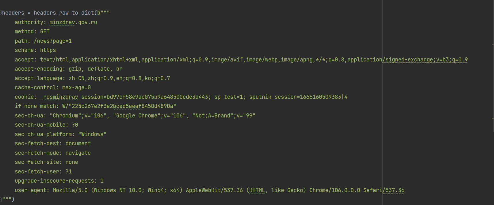 直接将浏览器的请求标头复制到引号之间