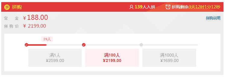 举个例子吧,下面这个进度条表示预约的人数,它是接口异步加载完才展示的。如果加载完就立即设置进度条宽度会显得生硬无趣,但是如果加上一点动画效果的话就好多了。然而问题又来了,如果加上动画那么逻辑上这个进度条应该是一点点的增加,对应的人数也应该是逐个增加。于是我就做了个优化,让人数在这段时间内均匀的增加。这个细节并不是很容易被人发现,但是这种设计会让用户感觉很用心而且有意思: