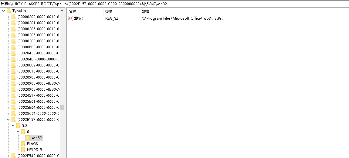 注册表中找到 计算机\HKEY_CLASSES_ROOT\TypeLib\{0002E157-0000-0000-C000-000000000046}\5.3\0\win32