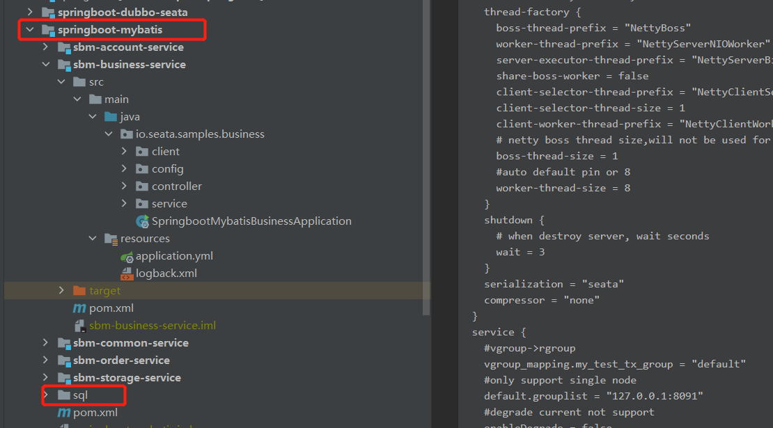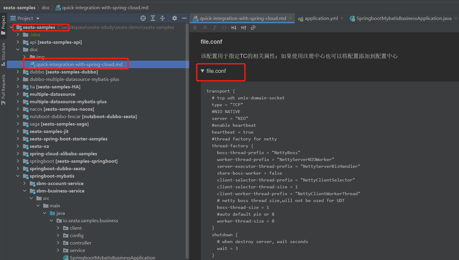 解压seata. 修改file.conf文件, 使用samples中的这个文件中的内容, 全部覆盖