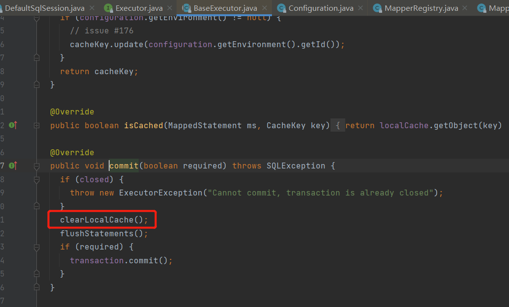 当有更新操作(注意是更新操作 ,不需要命中cacke的key,cachekey只是用作查询。因为语句是手写的,所以更新语句和查询语句对数据的影响,框架没办法知道),或者sqlsession关闭时,才直接清空缓存。