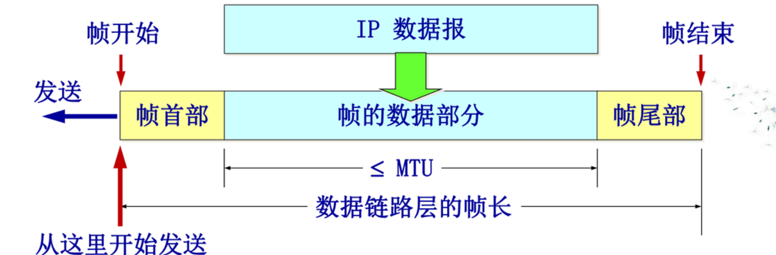 - 封装成帧的定义:对上层的分组进行封装,添加首部和尾部,确定最大传输单元mtu