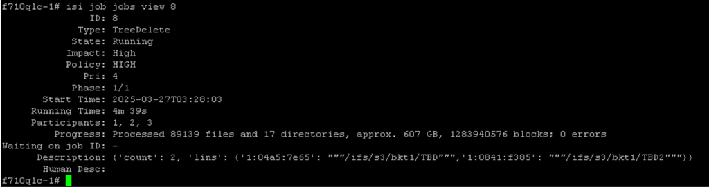 isi job jobs start TreeDelete --paths /ifs/datasets/mixed_dataset --policy=HIGH