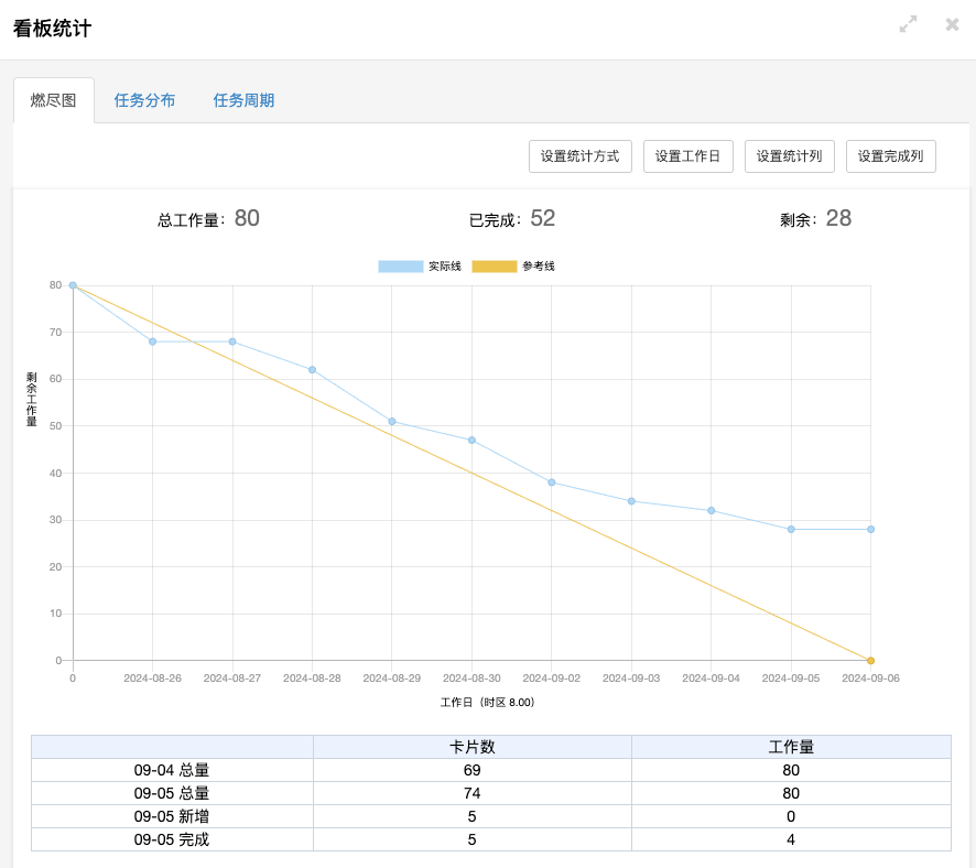 Leangoo 提供了燃尽图、项目统计等功能,帮助项目负责人实时掌握项目整体进度、剩余工作量等关键数据。数据的可视化呈现不仅让管理者对项目状态一目了然,还能帮助团队总结经验,为未来的项目提供指导。