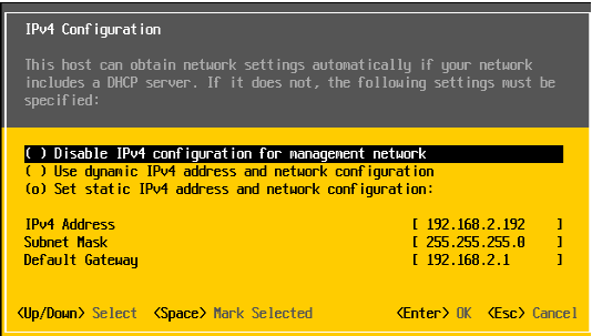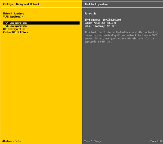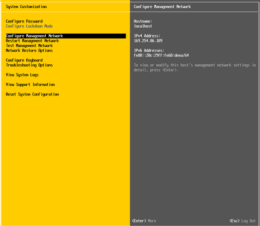 选择 "Configure Management Network"(注意先选下网卡NetworkAdapter,如果驱动正常应该能看见多张网卡,插拔网线有在网卡那儿有提示哪个网卡连接上了,可以以此区分网卡):
