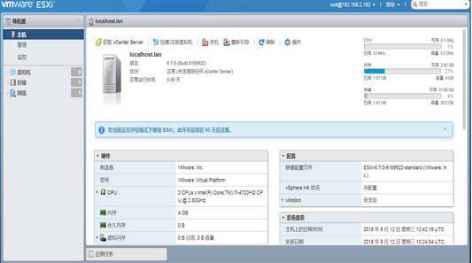 安装完成后,将服务器插上网线,把自己电脑跟ESXi服务器设置同一网段就能通过IP地址在浏览器中访问服务器了: