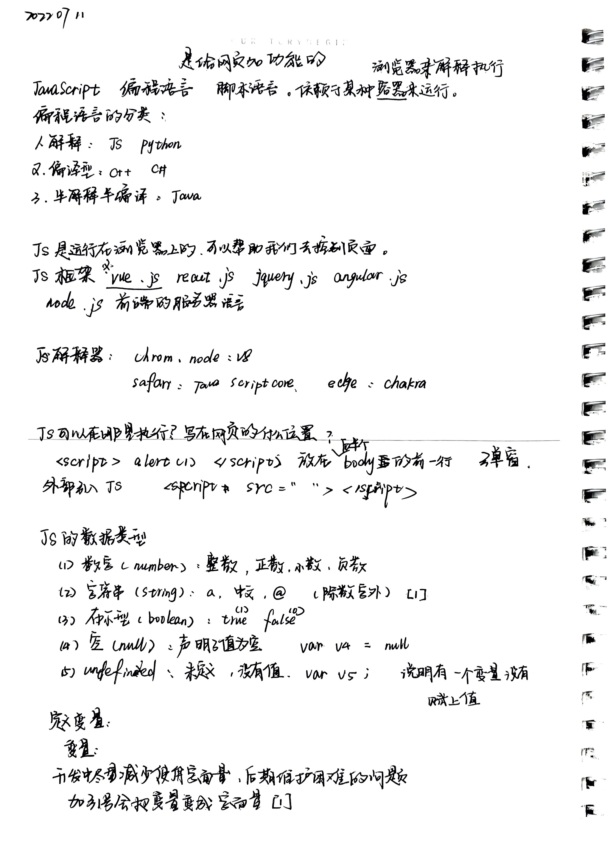 2022-07-11 今天是学习的第三天,内容拓展到了JavaScript,我觉得比昨天的难度确实大了那么一点点,记忆起来确实体量很大,日复一日的积累下来,积沙成山,遗漏的地方会更多。 所以我仍然选择继续手写加深记忆,并且列出表格慢慢填补。
