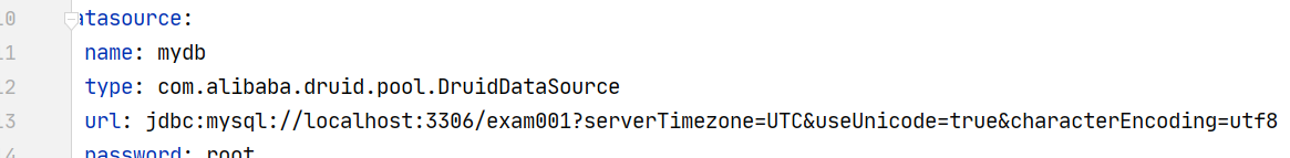 url: jdbc:mysql://localhost:3306/exam001?serverTimezone=UTC&useUnicode=true&characterEncoding=utf8**