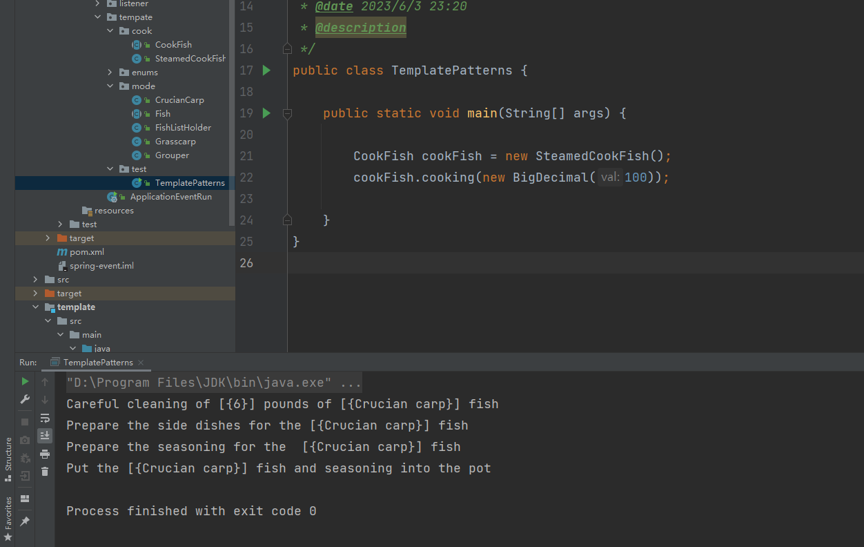 1、到这里我们就完成了基本的实现了模板设计模式,本设计模式主要对烹饪 cooking 这个方法进行具体的拆分,从而达到流程控制的作用。