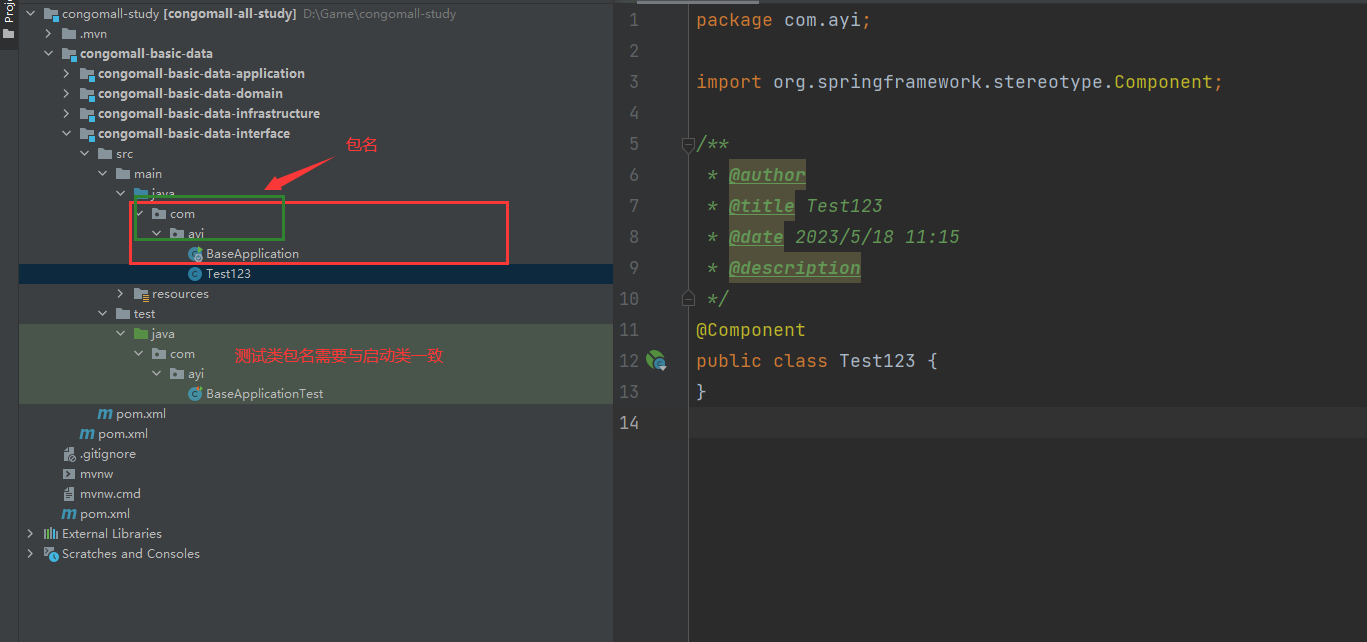 摘要: # SpringBoot Test 常见错误 ## test 中的测试类对应包名需要与启动类一致  - 直接在启动