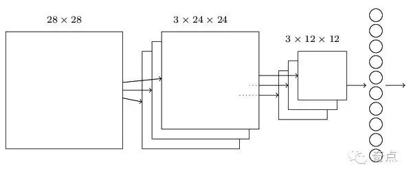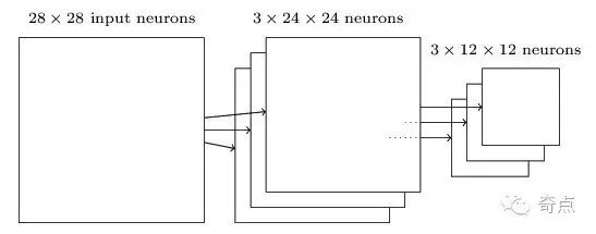 28X28经过3个过滤器变成3个24X24的特征图像,然后再经过池层简化成3个12X12的特征图像。