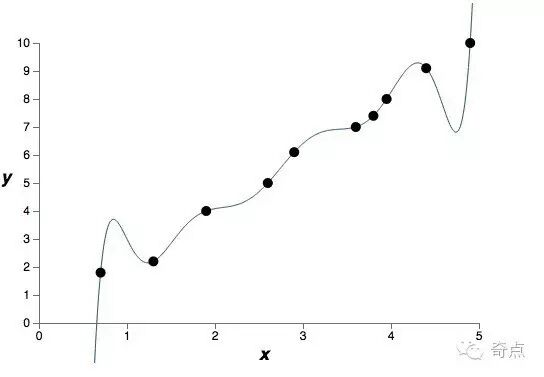 但是如果把调训练出来的曲线用在测试数据上时就很肯能不太准确了,还不如一条直线更贴切